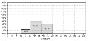 Ein Handelsunternehmen liefert insgesamt 200 Kugelschreiber an lokale Geschäfte aus. Das nachfolgende Histogramm stellt die Mengen an Kugelschreiber in unterschiedlichen Preisklassen dar, die an diese Geschäfte vertrieben worden sind.