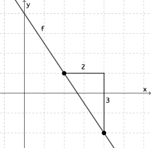 Gegeben ist der Graph einer linearen Funktion f, sowie die folgende Eigenschaft: Wenn das Argument $x$ um 1 zunimmt, dann nimmt $f(x)$ um den Wert $a$ ab.