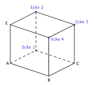 In der nachstehenden Abbildung ist ein Quader dargestellt. Die Eckpunkte A, B, C und E sind beschriftet.